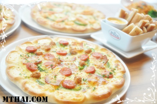 1. Italian Super Seafood อิตาเลียนขอบชีส หน้าซุปเปอร์ ซีฟู้ด อัดแน่นไปด้วยสุดยอดความอร่อยจากทะเล ทั้งกุ้งตัวใหญ่ ปลากหมึกสดเต็มแผ่น และปูอัดเนื้ออวบที่เรียงตัวกันเต็มพื้นที่บนซอสมารีนาร่าแสนอร่อย แซมด้วยใบอิตาเลียนเบซิลหอมกรุ่น หัวหอมใหญ่และพริกหวาน ก่อนจะอบกับชีสจนได้ที่และโรยซ้ำด้วยชีสพาร์เมซานกับใบพาร์สลีย์ช่วยชูรส โอบล้อมด้วยชีสเต็มๆ ขอบ อร่อยเข้มเต็มๆ คำ