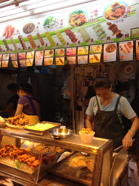 และอาหารที่พลาดไม่ได้ถ้ามาฮ่องกงก็คือ พวกลูกชิ้นทอด ไส้ทอดและสารพัดของต้ม ของทอดริมถนน ร้านแบบนี้มีอยู่ทั่วไป ราคาไม่แพง สามารถซื้อแล้วเดินกินได้เลย หาได้ง่ายในถนน tsim sha tsui ร้านไหนก็ได้เพราะรสชาติก็คล้ายกัน ร้านริมถนนแบบนี้จะขายดีช่วงอาหารเย็น และอาหารกลางวัน มีสารพัดเมนู ทั้งลูกชิ้นต้มชีอิ้ว ไส้ต้ม ผักทอด เยอะแยะเต็มไปหมด ลองไปชิมดูได้