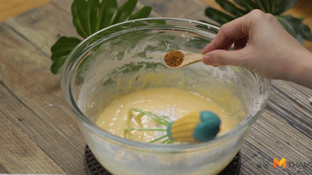 2. ใส่ส่วนผสมแห้งทั้งหมดตีให้เนียน