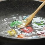 1. ผสมแป้งข้าวเหนียวแป้งข้าวโพดและน้ำเข้าด้วยกันผสมสีตามชอบ