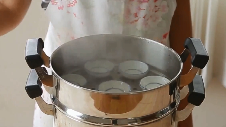 2. นึ่งถ้วยตะไลในหม้อรังถึง ประมาณ 5- 10 นาที เตรียมไว้