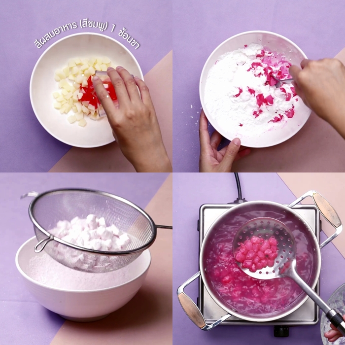 - สีผสมอาหาร (สีชมพู) 1 ช้อนชา