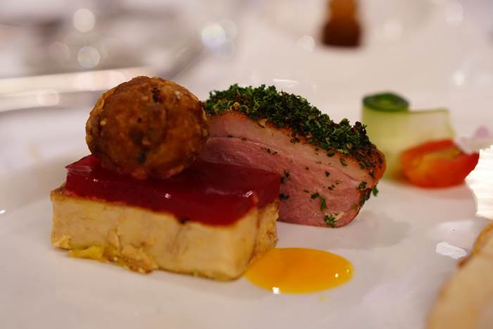 เริ่มต้นเมนูแรกที่นำออกมาเรียกน้ำย่อยกันแบบเบาเบา ‘Welcome Winter’ เป็นหน้าอกเป็ดรมควัน ที่มีหนังกรอบนอกนุ่มใน ผสานความนุ่มของเนื้อหน้าอก ทานคู่กับน้ำจิ้มแจ่วสูตรพิเศษ พร้อมเนื้อเป็ดบด และฟัวกราส์ เรียกได้ว่าเป็นเมนูเรียกน้ำย่อยที่ไม่ธรรมดาจริงๆ