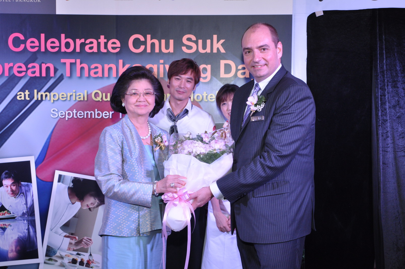 ????????????????????????? เมื่อเร็ว ๆ? นี้? สุวิมล มหากิจศิริ และ มร.ไมเคิล ซีเทค ผู้จัดการทั่วไป โรงแรมอิมพีเรียลควีนส์ปาร์ค? ??เปิดโปรโมชั่นพิเศษ? ?Celebrate Chu Suk Festival at Imperial Queen?s Park? ??(วันขอบคุณพระเจ้าประเทศเกาหลี) ?ซึ่งงานนี้ได้รับเกียรติจากสุดยอดเชฟชื่อดังจากเกาหลี Chef Lee, Sang Hack และ Chef Hyeonji, Myeong บินตรงมาจากกรุงโซล เพื่อปรุงแต่งอาหารอันเลื่องชื่อให้ท่านที่ชื่นชอบได้ลิ้มลองทั้งคาวและหวาน อาทิ กิมจิผักกาดขาว, มันฝรั่งผัด, ข้าวผัดเนื้อและผัก, ผัดวุ้นเส้นเนื้อและผัก, ผักโขมปรุงรส, หอยนางรมเห็ดปรุงรส, ?ไข่ม้วน, ?ปลาตุ๋น, ซี่โครงหมูอบ เป็นต้น