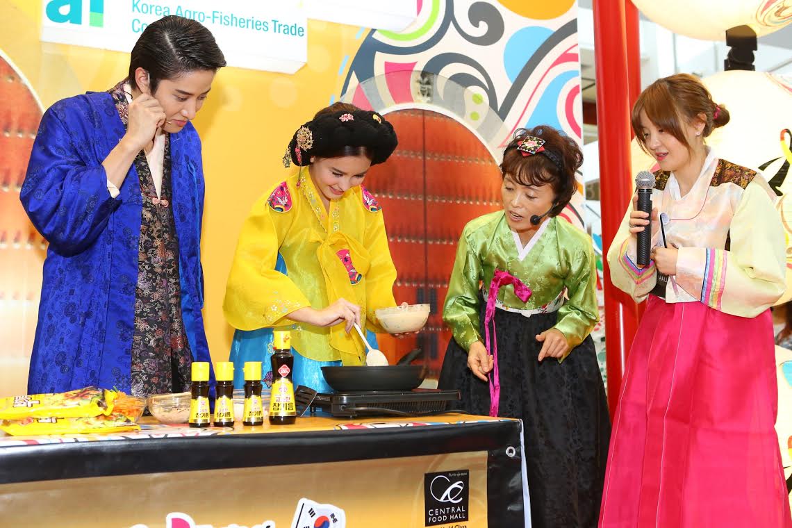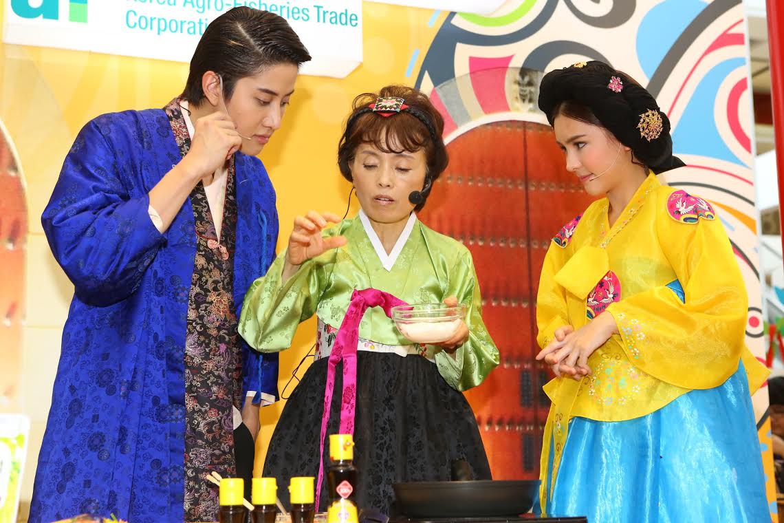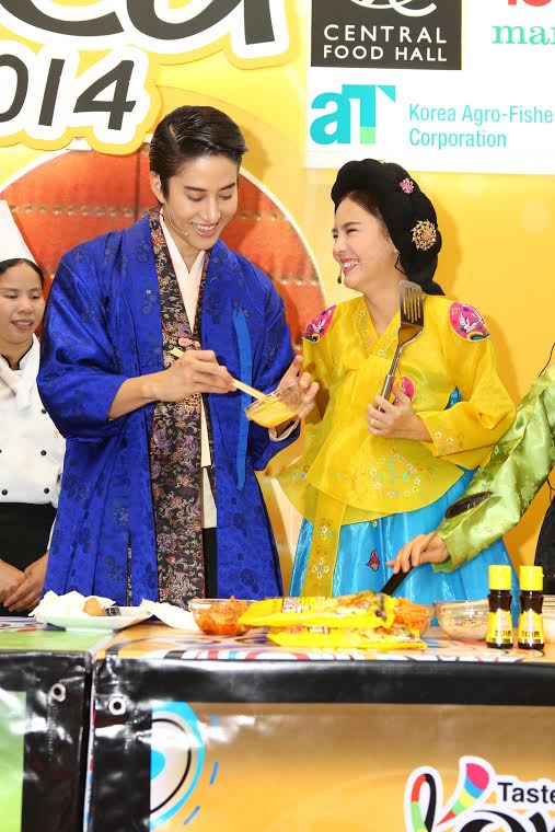 ฟินเฟ่อร์!! เมื่อ ไมค์-พิรัชต์ และ ออม-สุชาร์ มาโชว์เสน่ห์ปลายจวัก สูตรลับฉบับเกาหลี ร่วมกับเชฟกิมจิในงาน “Taste of Korea 2014” เปิดตัวเทศกาลอาหารเกาหลี ที่เซ็นทรัล ฟู้ด ฮอลล์ และท็อปส์ มาร์เก็ต จัดขึ้นมาให้สาวกเกาหลีได้ฟินกันเบาๆ กับสินค้าและอาหารที่ส่งตรงจากแดนกิมจิกว่า 1,100 รายการ พร้อมโปรโมชั่นแจกฟรี Samsung Galaxy S5 จำนวน 10 รางวัล โดยได้รับเกียรติจาก มร.ยู ยอง ฮาน ผู้ช่วยทูตฝ่ายศุลกากร สถานเอกอัครราชทูตสาธารณรัฐเกาหลี ประจำประเทศไทย และ มร.นิค ไรท์ไมเออร์ บิ๊กบอสด้านจัดซื้อสินค้าต่างประเทศแห่ง เซ็นทรัล ฟู้ด รีเทล เป็นประธานเปิดงาน ณ เซ็นทรัล ฟู้ด ฮอลล์ ชั้น 7 ศูนย์การค้าเซ็นทรัลเวิลด์ เมื่อเร็วๆ นี้