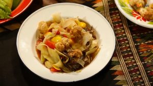 สูตร ตำหลวงพระบาง เส้นมะละกอแผ่นใหญ่ น้ำปลาร้าจัดเต็ม