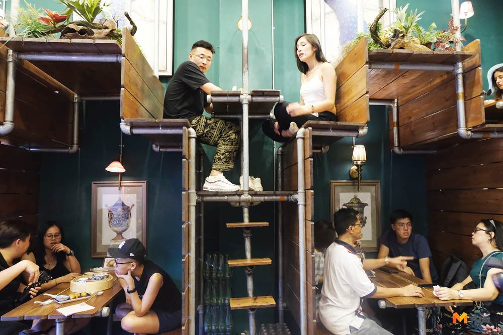 Lhong Tou Cafe (เยาวราช) ร้านติ่มซําร้านเล็กๆ แต่จุคนได้เยอะ ด้วยดีไซน์ที่น่าท้าทายด้วยโต๊ะเป็นขั้นบันได วางสลับกันไปมา ใครชอบโหนปีนป่ายเชิญที่ชั้น 2 ส่วนใครขาแข้งไม่ดีก็นั่งด้านล่างได้ ถึงแม้ร้านจะเล็ก แต่ไม่รู้สึกอึดอัดเพราะอีกด้านจะเป็นกระจกสะท้อน ทำให้ร้านดูกว้าง และคนที่นั่งด้านบนก็สามารถถ่ายรูปสะท้อนกระจก และสามารถถ่ายบรรยากาศชิคๆ ได้รอบร้าน