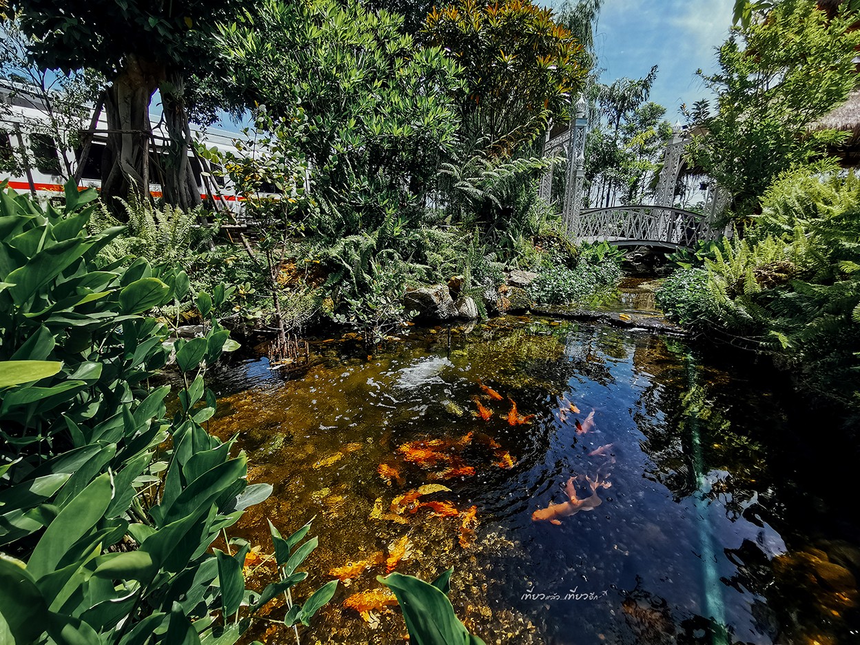 คาเฟ่สไตล์โมเดิร์นลอฟท์โปร่งสบาย แต่มีสวนร่มรื่น มีสะพานเล็กๆ และมีตู้รถไฟเก่าที่มาดัดแปลงเป็นห้องประชุมเล็กๆ และที่พิเศษสุดๆคือ ที่นี่ มีน้องกวางออกมาเดินเล่นด้วยจ้าาาา แต่น้องกวางจะออกมาแค่ตอน 11.00 และ 16.00 เท่านั้นจ้า
