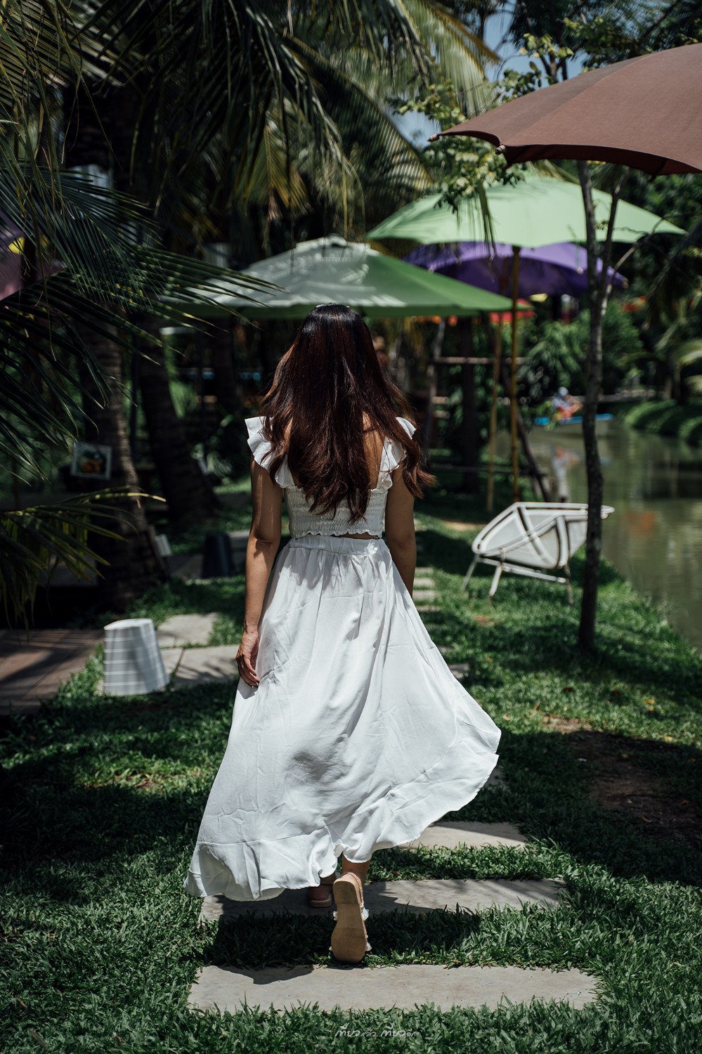คาเฟ่ที่เหมือนนั่งเล่นในสวนหลังบ้าน ที่นี่ เป็นที่นั่งริมร่องน้ำในสวนมะพร้าว บรรยากาศดีเว่อร์ และยังมีเรือให้พายเล่น มีสะพานไม่ไผ่ มุมถ่ายรูปเก๋มาก และ ขอบอกว่า ขนมเค้กลูกตาลอัญชัน อร่อยมากกกก