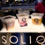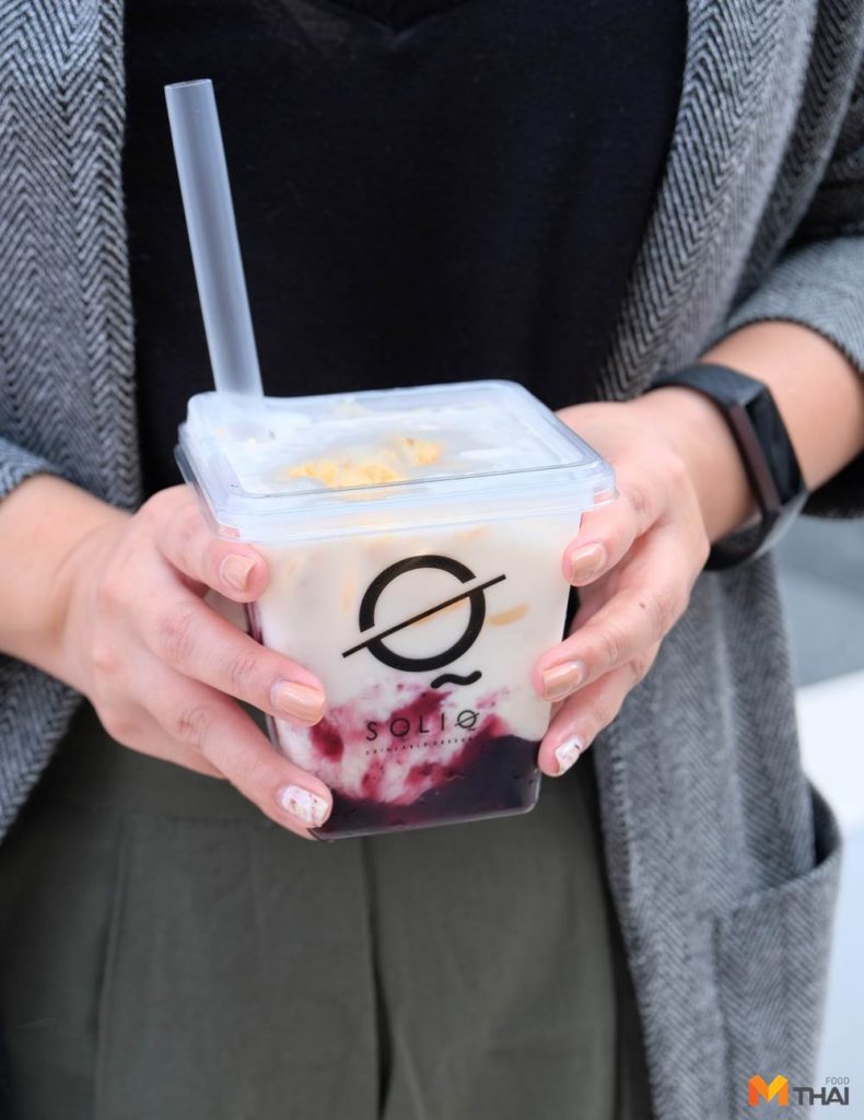 ส่วนหมวดเครื่องดื่มสไตล์ SOLIQ จะเป็นชื่อเมนูขนมเค้กอย่าง Banoffee บลูเบอร์รี่ชีสเค้ก ข้าวเหนียวมะม่วง ฯลฯ เป็นรสชาติของขนมแต่ได้สัมผัสเป็นเครื่องดื่มเย็นชื่นใจ เรียกว่าเป็นขนมที่ต้องใช้หลอดดูด กับแก้วทรงสี่เหลี่ยมดูแปลกตา คล้ายๆ กับถ้วยของขนม ก่อนดื่มให้คนให้ทั่วๆ และที่สำคัญคือ ก่อนที่จะคนต้องถ่ายรูปสักสองสามแชะลง IG