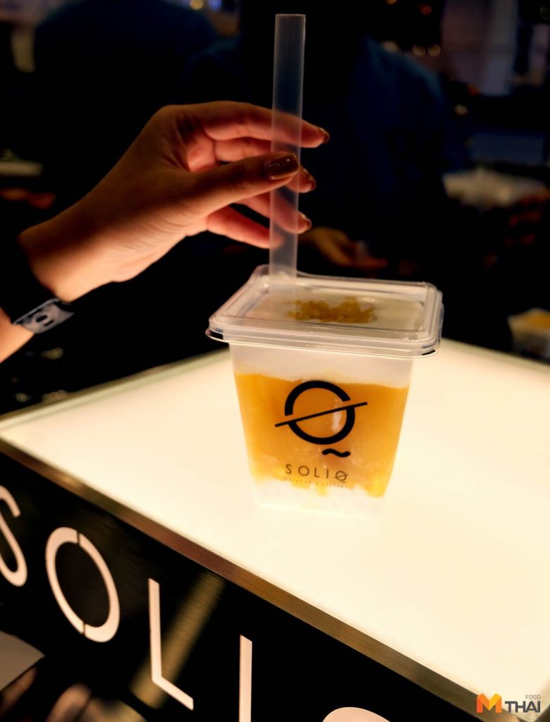 SOLIQ อ่านว่า โซลิค เครื่องดื่มแนวใหม่ที่นำขนมหวานและเครื่องดื่มมาผสมกัน โดยเมนูของที่ร้านจะมี 2 แบบ คือหมวดของชา ชานม ชาดำเลมอน และชาขาวยูซุ และขาดไม่ได้คือไข่มุก