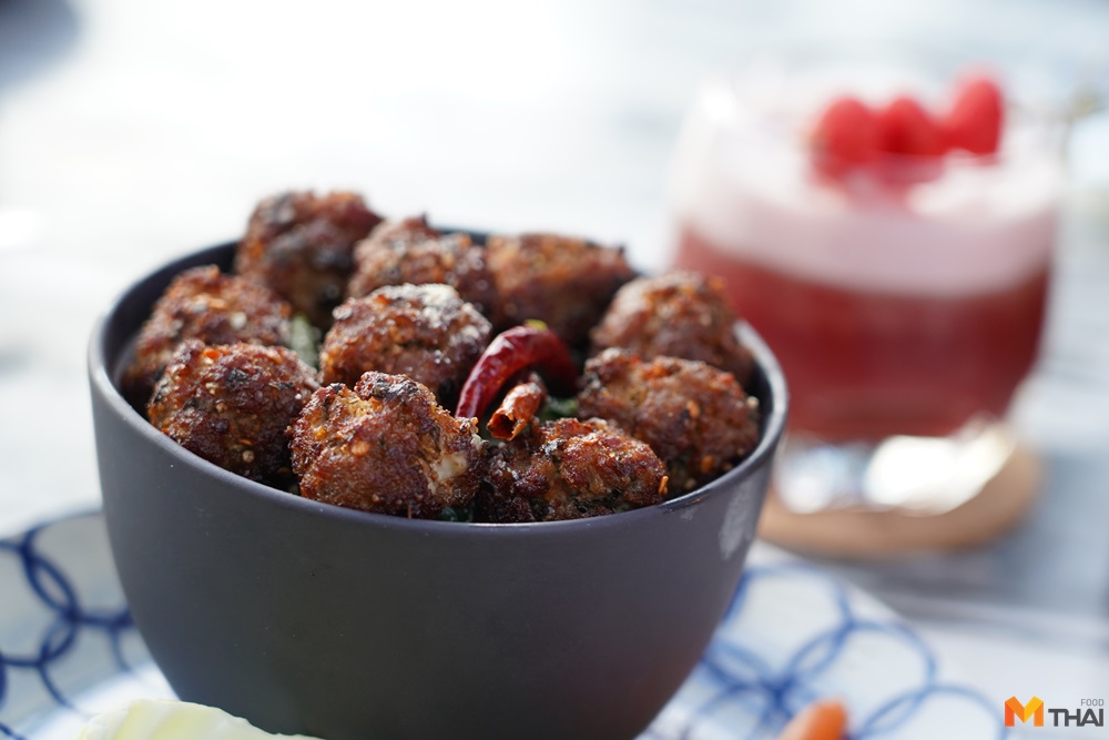 ลาบหมูทอด (250.-) ก้อนกลมพอดีคำ รสจัด แต่เนื้อยัง juicy อยู่