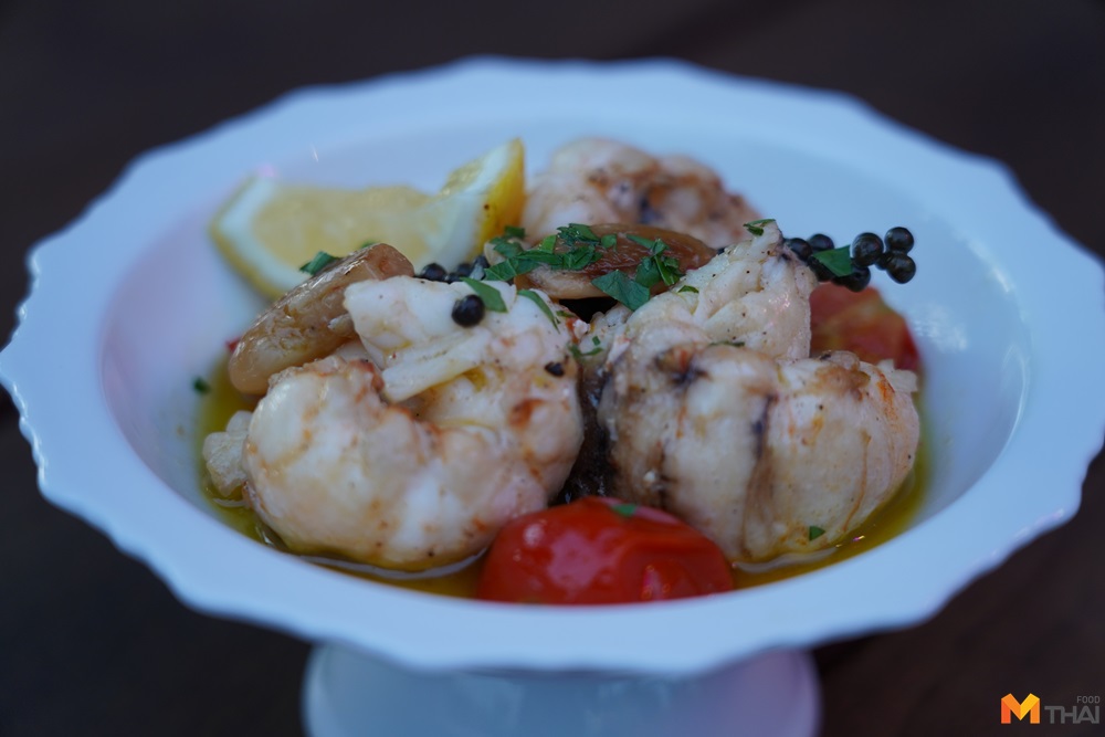 Rock lobster tail, confit garlic, parley (580.-) กั้งเนื้อหวานแน่น กินคู่กับกระเทียมตุ๋น