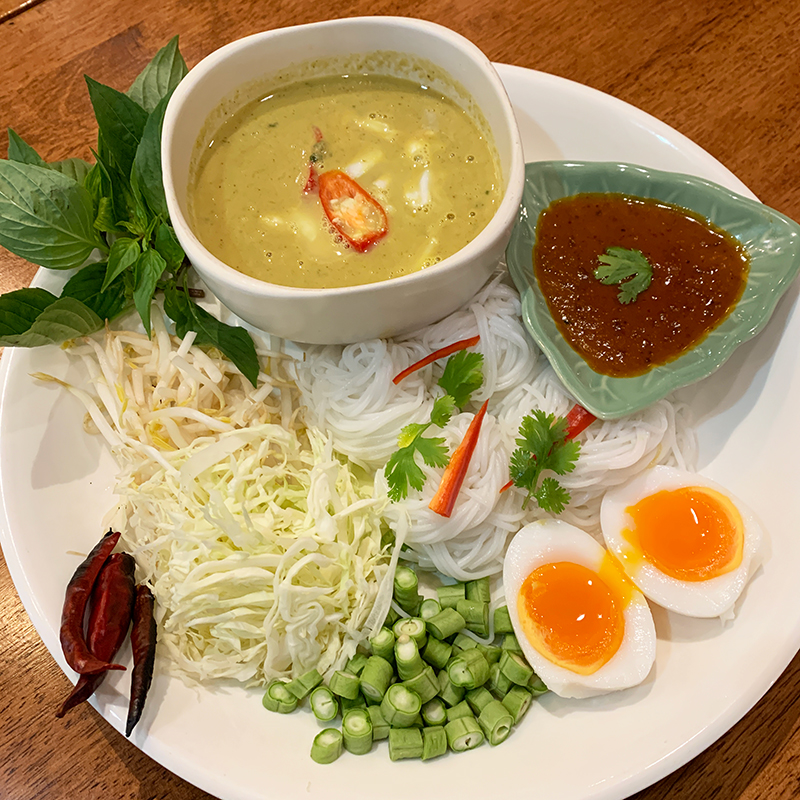 ทีเด็ดของ ขนมจีนน้ำยาปูก้อน นั่นก็คือเนื้อปูที่แน่นและหวานจากจังหวัดระยอง น้ำยากระทิเข้ากับพริกแกงสูตรส่งตรงจากปักษ์ใต้ คนนครแท้ๆ รสชาติเลยออกมาแสนกล่อมกล่อม ฟินไปถึงใจ
