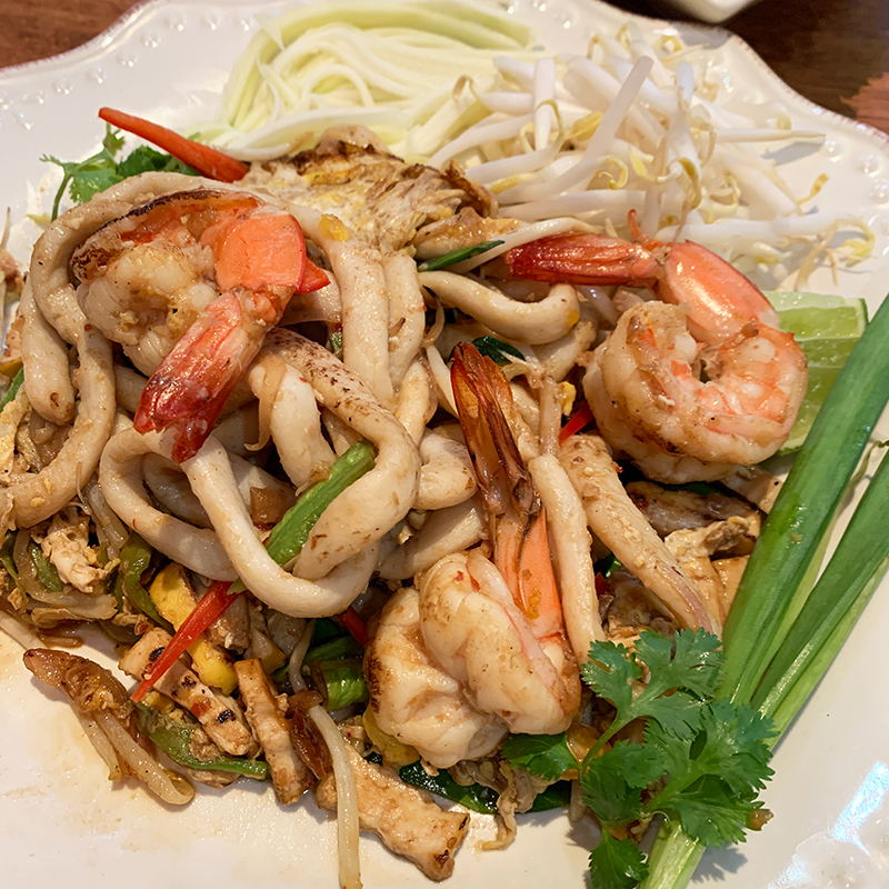 ผัดไทยปลาเส้น กุ้งสด