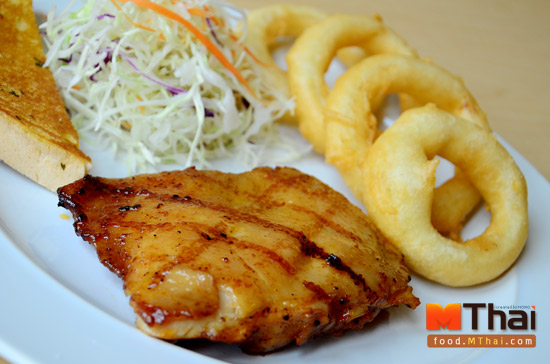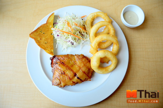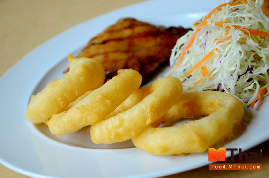 ไก่ย่างเจฟเฟอร์ + หอมทอด (79 บาท) จานนี้เลือกเครื่องเคียงเป็นหอมทอดไม่คิดเพิ่ม เนื้อไก่หมักซอสสูตรเฉพาะ เนื้อไก่นุ่ม หนังก็ไม่หนา ไม่บางจนเกินไป ทานได้ถูกใจทั้งคนที่ชอบหนังไก่ และไม่ชอบหนังไก่ เนื้อไก่ยังคงความชุ่มช่ำ ไม่แห้ง หอดทอดก็กรอบนอกนุ่มใน