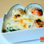 หอยนิวซีแลนด์อบชีส (59 บาท) เป็นหอยแมลงภู่ตัวใหญ่ๆ จากนิวซีแลนด์ ราดด้วยครีมซอส ของทางร้านเอง และอบชีสเข้าไปอีกชั้น บอกได้เลยว่าสำหรับคนชอบชีสและครีมซอสล่ะก็ ต้องเมนูเลยทีเดียว และคุณจะติดในความข้นของครีมซอสและมีกลิ่นหอมๆ ของนมเล็กน้อย และยังอบชีสมาอีกด้วย (คิดภาพตามนะคะ ทานตอนร้อนๆ ชีสยืด…ยืด) และส่วนเนื้อหอยนิวซีแลนด์นั้น เขาทำการตัดครึ่งมาให้เราทานง่ายๆ ด้วยนะคะ