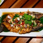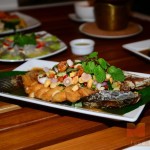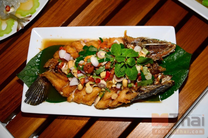 ปลาช่อนทอดตัวใหญ่ทอดในน้ำมันร้อนๆ จนเหลืองกรอบ โรยหน้าด้วยน้ำยำสูตรเด็ดจากร้าน The cafe’ ยกเสิร์ฟขณะร้อนๆ รับรองความกรอบ อร่อย รสชาติเด็ดถึงใจ