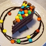 หรือหากใครที่ชอบ ทานช็อกโกแลตเน้นๆ ก็ต้องเมนูนี้เลย Kit Kat Cake เค้กช็อกโกแลตเนื้อนุ่ม หวานกำลังพอดี กรุบกรอบอร่อยไปกับ ขนมคิทแคทและ M&M สีสันสวยงาม