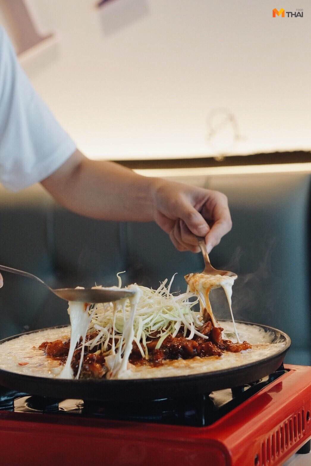 เมนูสนุกๆ กับมอซซาเรลล่าชีสบนกระทะร้อน ผัดให้ชีสยืดๆ และปิดไฟทันที กับเนื้อสะโพกไก่อบซอสเผ็ด และต็อกบกกินุ่มหนึบๆ ใครชอบเผ็ดสไตล์เกาหลีต้องลอง