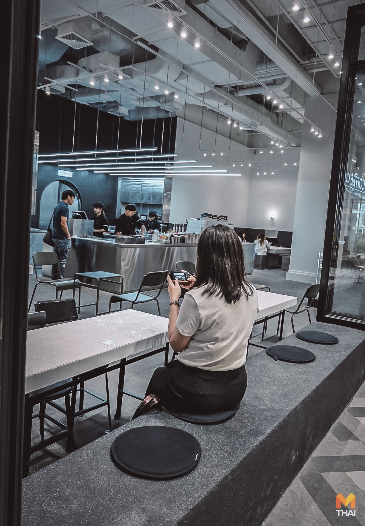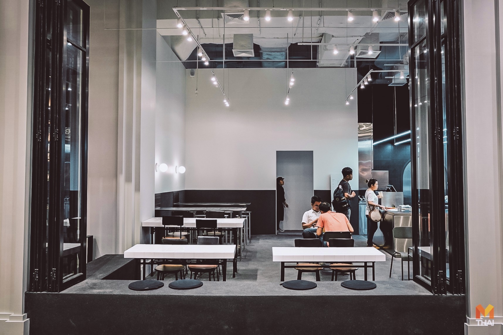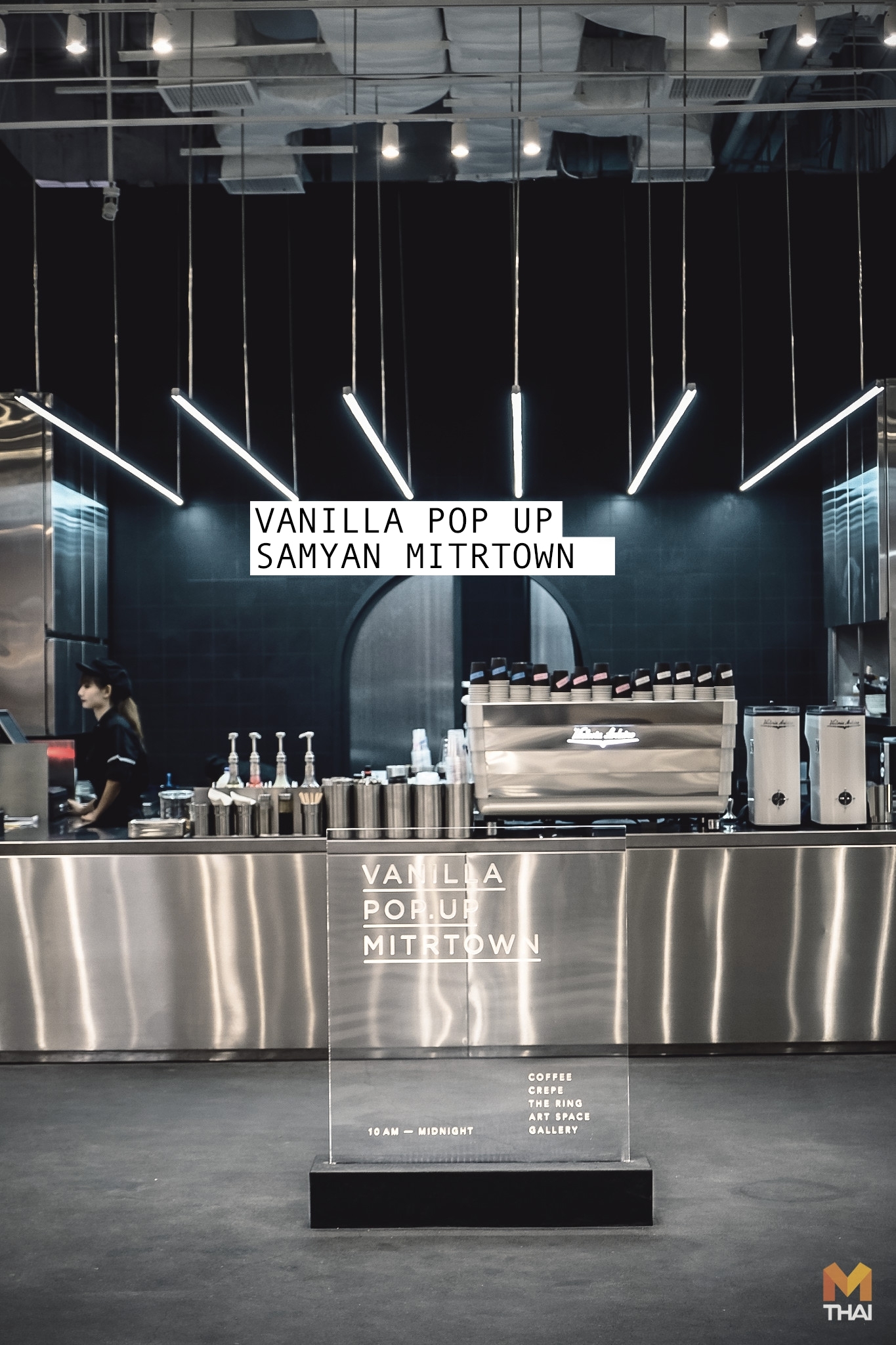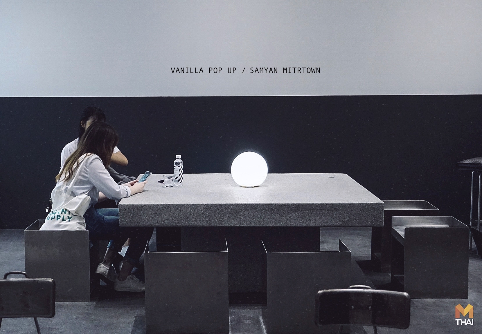 มาดเท่ๆ ไม่หวานเหมือนชื่ออย่าง Vanilla Pop.up Mitrtown เปิดสาขามามากมาย การตกแต่งจะไม่เหมือนกัน แต่ที่เหมือนกันคือความหรูหราที่เข้าถึงง่าย กับสาขาล่าสุดที่สามย่านมิตรทาวน์ มาในโทนสีเทา ดำ เมทัลลิค ตกแต่งไฟแบบน้อยๆ ไฟจะกระทบกับโต๊ะทำให้ร้านดูสว่าง ถึงแม้ว่าร้านจะมีลงท้ายว่า Pop up แต่ร้านก็ดูกว้าง นั่งทำงานได้สบาย ตรงกลางเป็นบาร์ขนาดใหญ่ ส่วนด้านซ้ายและด้านขวาคือโซนที่นั่ง มีโต๊ะหลายไซส์หลายแบบให้เลือก