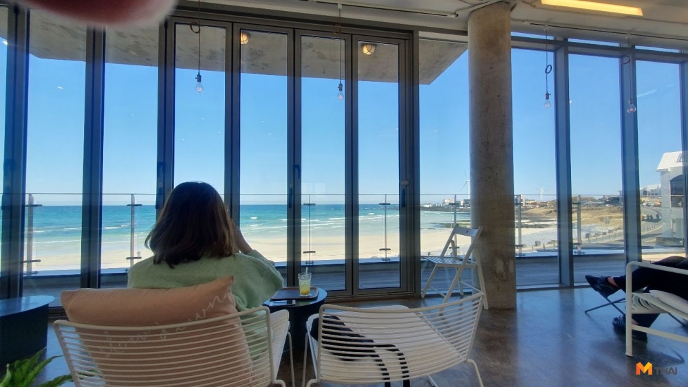 ตัวร้านมี 2 ชั้น และก็แน่นอนว่าส่วนใหญ่ลูกค้าเลือกไปนั่งชั้น 2 เพื่อชมวิวชายหาดแบบเต็มๆ ที่นั่งค่อนข้างเยอะ นั่งสบายมากๆช่วงที่เราไปเป็นหน้าหนาว ก็จะมีประตูกระจกปิดกันลมไว้แต่ยังสามารถชมวิวชายหาดได้อย่างเต็มๆ พร้อมจิบกาแฟ หรือเครื่องดื่มได้อย่างชิลจริงๆ