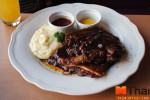 ซี่โครงหมูหมักเบียร์ย่างซอสน้ำผึ้งมัสตาร์ด เสิร์ฟกับมันบด 420.- ใครชอบเมนูหมูๆ ต้องลิ้มลองเมนูนี้ครับ ซึ่ง เป็นหมูหมักเบียร์อย่างดี กลิ่นหอมฉุยชวนรับประทานมากๆ