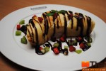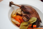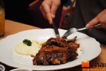 น่องเป็ดอบซอสพีชและไวน์แดงเสิร์ฟกับมันฝรั่งอบ 420.- น่องเป็ดชิ้นโตๆ อบอย่างดีด้วยไวน์แดง กลิ่นหอม