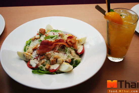 ซีซ่าร์สลัด เสิร์ฟกับไข่ต้ม ขนมปังกรอบและเบคอน 255.- เป็นสลัดคุณภาพครบถ้วน ทั้งไข่ เบคอน ขนมปัง และผักนานาชนิด พร้อมน้ำสลัดสูตรพิเศษของ Portabello