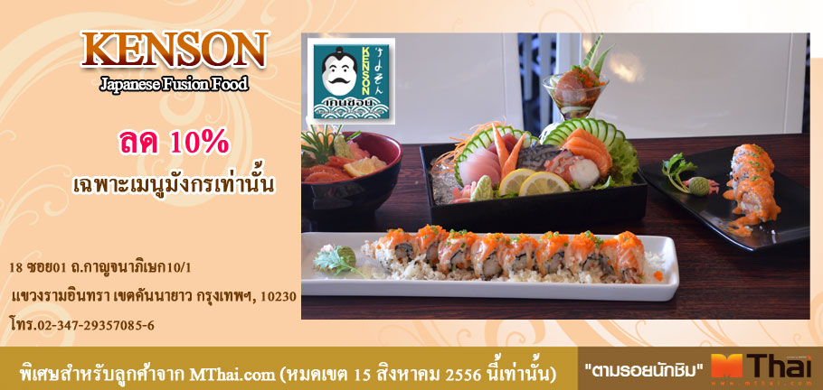 ครั้งนี้ food.mthai เราขอนำเสนอ อาหารญี่ปุ่น ที่แสนสด และเรื่องของคุณภาพไม่ต้องพูดถึง และยิ่งราคาด้วยแล้ว ขอบอกเลยว่า คุณภาพขนาดนี้แต่ราคาแบบนี้ ถือว่าถูกมากๆ ร้านอาหารญี่ปุ่นที่ว่านี้ ใช้ชื่อว่าKENSON เป็นภาษาญี่ปุ่น ที่แปลได้ว่า “นอบน้อมถ่อมตน” ซึ่งถือได้ว่าตรงกับร้านและเจ้าของร้านมากๆ เพราะที่ถึงแม้ จะเป็นเจ้าของร้านแล้วก็ตาม แต่ก็ยังมาทำอาหารญี่ปุ่นที่อร่อยๆ เสิร์ฟให้ลูกค้า ด้วยความนอบน้อม และเป็นกันเองจริงๆ