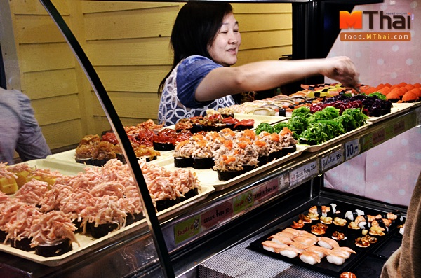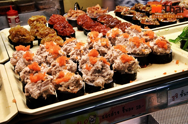 ร้านซูชิ เจ้าดัง ใครที่มาบ่อยจะรู้จักกันดี โดดเด่นเรื่องหน้าซูชิที่มีกว่า 40 หน้า ด้วยกัน คำโตแต่ราคาเพียง 10-15 บาท ต่อชิ้น เท่านั้น ซื้อกลับบ้านหรือนั่งทานหน้าร้านก็ได้